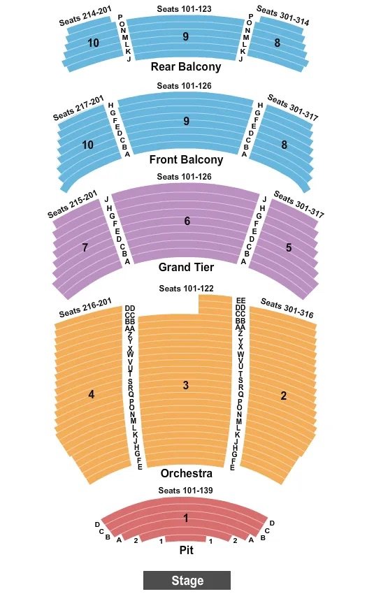 • Grand Tier (Mid Level): Offers a balanced view of both the stage action and the full audience reaction.